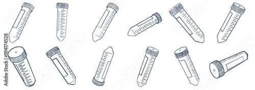 Line Art Collection of Laboratory Centrifuge Tubes Tools for Scientific Experiments and Educational Purposes