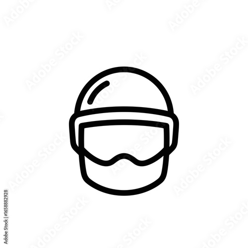 Line art helmeted figure with goggles in minimal design Minimal linear icon on the theme of military and defense equipment. Perfect for apps, websites, infographics, educational materials