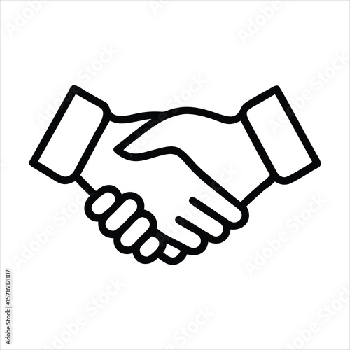 Line Art Icon of Two Hands Shaking in Agreement and Partnership