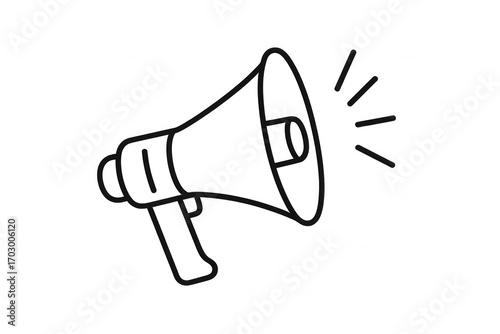 Line art megaphone icon representing communication, announcements, and important messages on a transparent background