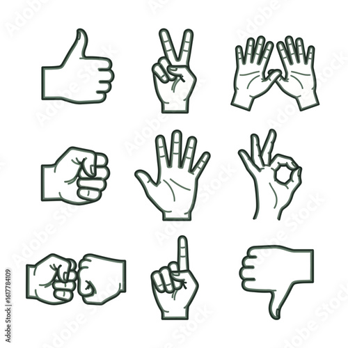 Line Art Vector SVG Icon Set of Hand Gestures in Minimalist Flat Style with Black Outline for Web and App Design