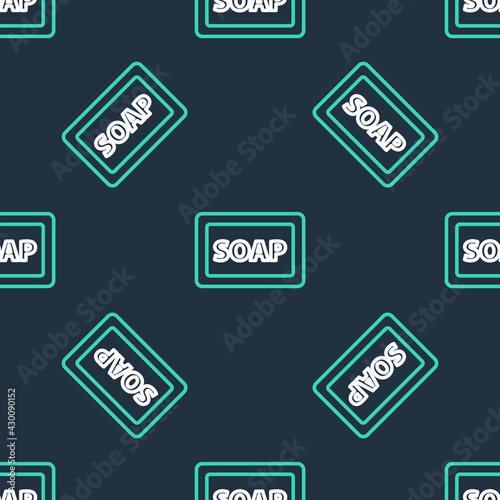 Line Bar of soap with foam icon isolated seamless pattern on black background. Soap bar with bubbles. Vector