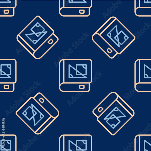 Line Book about geometry icon isolated seamless pattern on blue background. Vector