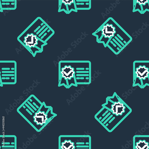 Line Certificate template line icon isolated seamless pattern on black background. Achievement, award, degree, grant, diploma. Business success certificate. Vector