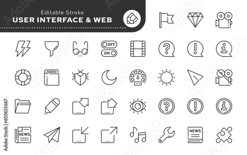 Line icon set. Web mobile user interface. UI and UX. Vector icon pack. Web icons in outline linear style.