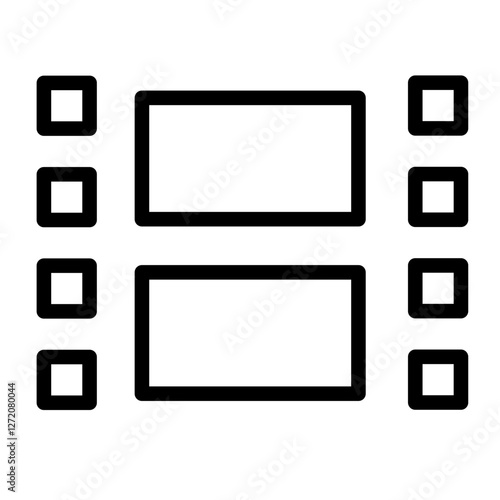 Line icon vector illustration depicting a digital video design with frames and placeholder elements for content creation