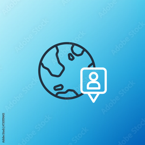 Line Location on the globe icon isolated on blue background. World or Earth sign. Colorful outline concept. Vector