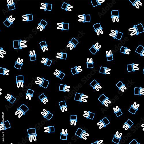 Line Magician hat and rabbit ears icon isolated seamless pattern on black background. Magic trick. Mystery entertainment concept. Vector