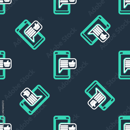 Line Mobile phone and shopping basket icon isolated seamless pattern on black background. Online buying symbol. Supermarket basket symbol. Vector