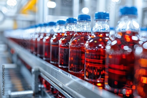 Line of bottling beverages in plastic bottles on clean. Generative Ai