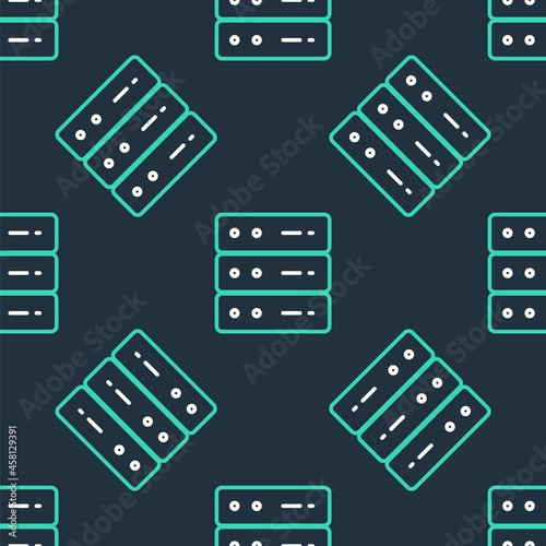 Line Server, Data, Web Hosting icon isolated seamless pattern on black background. Vector