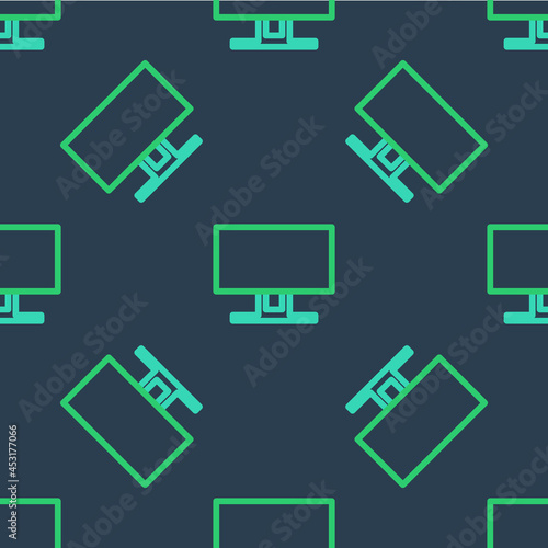 Line Smart Tv icon isolated seamless pattern on blue background. Television sign. Vector