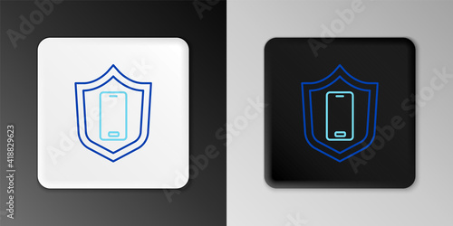 Line Smartphone, mobile phone with security shield icon isolated on grey background. Security, safety, protection concept. Colorful outline concept. Vector.