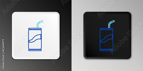 Line Soda can with drinking straw icon isolated on grey background. Colorful outline concept. Vector