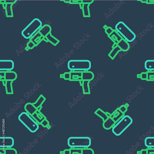 Line Water gun icon isolated seamless pattern on blue background. Vector
