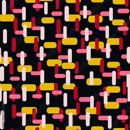 Linear geometric seamless pattern. Textured background with sticks, squares, strips. Vector illustration.