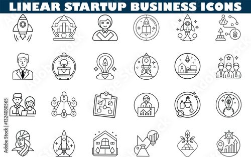 Linear Startup Business Icons Growth, Team, Funding, Strategy, Innovation