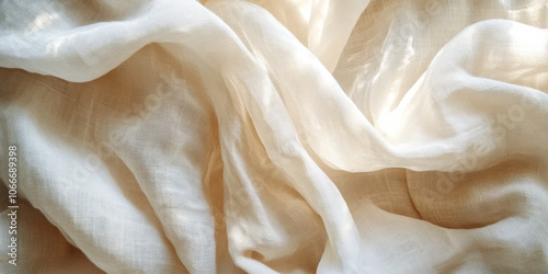 Linen fabric texture in soft cream tones with visible woven fibers for an organic, natural appeal