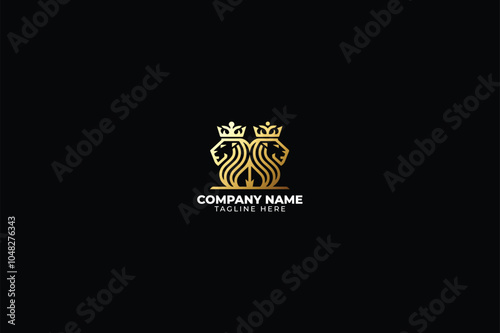 Lion King crown logo design , lion logo, king logo, gold logo, vector logo