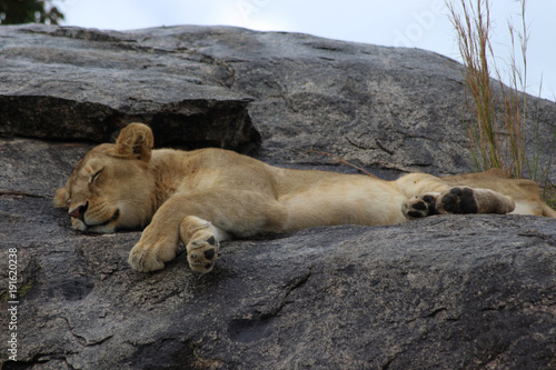 Lion resting on a rock