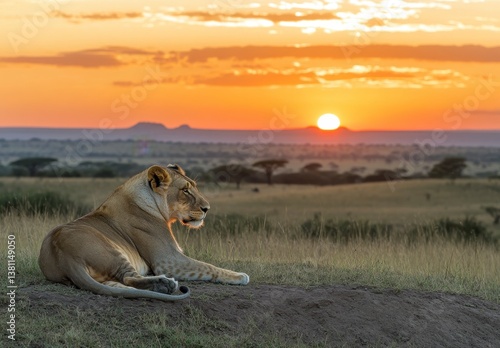 Lioness at Sunrise in the African Savanna