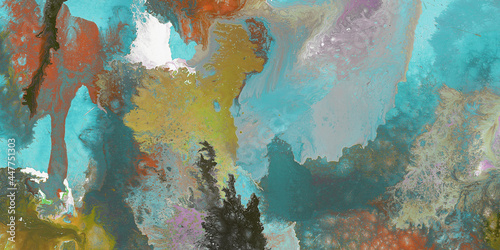 Liquid abstract marble painting background, turquoise color glitter acrylic marble with gold mica effect, fluid art painting in alcohol ink mixture. Marble stone paints with glowing golden veins.