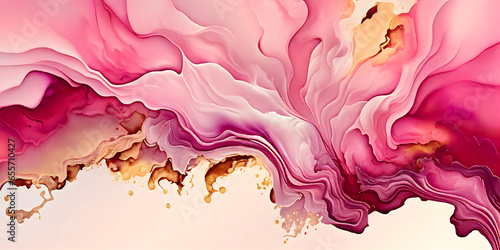 Liquid abstract pink marble texture watercolor painting, alcohol ink background. Generative Ai.