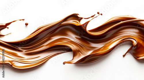 liquid chocolate flowing down on white background
