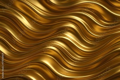 Liquid gold abstract waves flowing dynamically in three-dimensional luxury background design