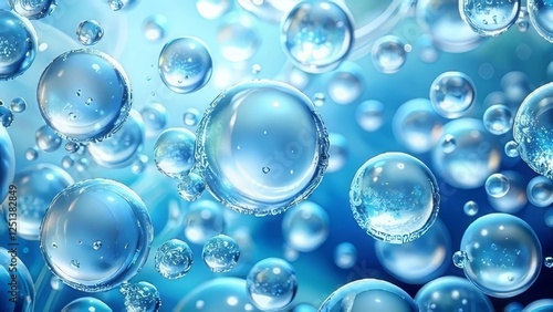 Liquid Spheres in a Serene Blue Hue Abstract Background of Translucent Bubbles Floating in a Calm Aquatic Environment