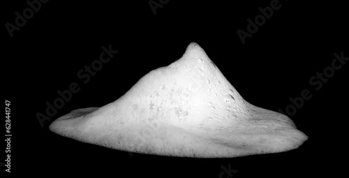 liquid white foam from soap or shampoo or shower gel Abstract soap bubbles. Set foam, soap bubble isolated on black, with clipping path texture and background.
