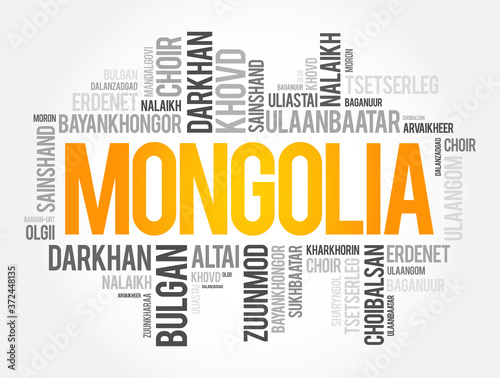 List of cities and towns in Mongolia, word cloud collage, business and travel concept background