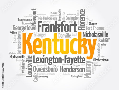 List of cities in Kentucky USA state, word cloud concept background