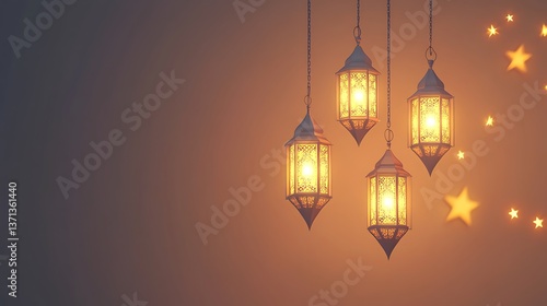 Lit lanterns with stars create a serene atmosphere on a warm background
