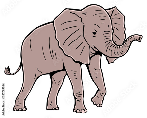 Little elephant with trunk and big ears. African wild animal. Fauna and wildlife of savanna. Vector illustration isolated on white background