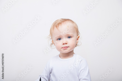 Little girl a on white background. Portrait