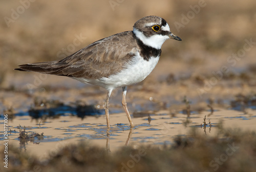 Little Ringed Plover (Charadrius dubius) aquatic bird searching for food in the water