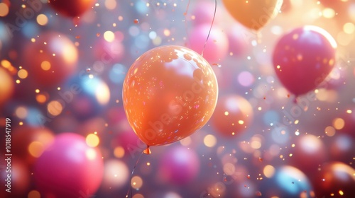 Lively New Year Eve background with an array of balloons in various colors, complemented by a cascade of confetti and a blur of cheerful blooms.