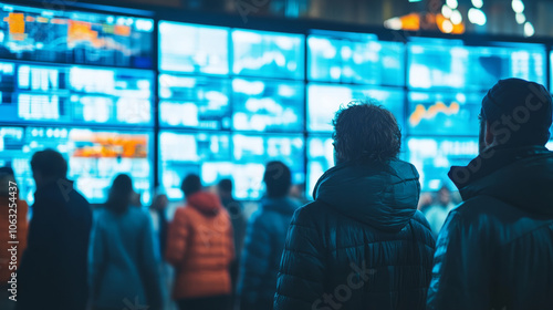 Livestock price competition event with screens displaying market rates, showing intense buyer and seller interactions