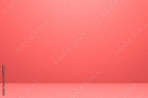 Living Coral empty wall room studio background. Color of year 2019 for summer fashion minimal concept...
