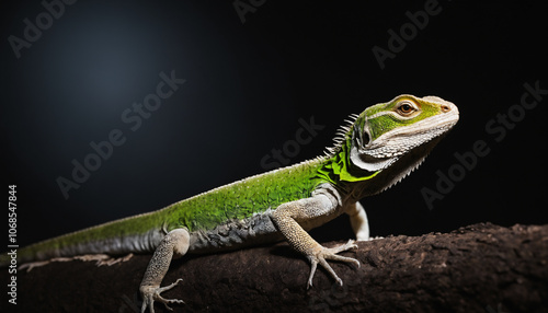lizard, perfect lighting, spot light with dark background
