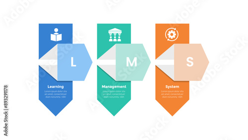 LMS learning management system infographics template diagram with creative vertical box arrow with 3 point step design for slide presentation