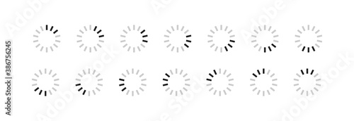 Load icon set. Loading circle symbol. Progress button sign. Download bar concept isolated illustration in vector flat