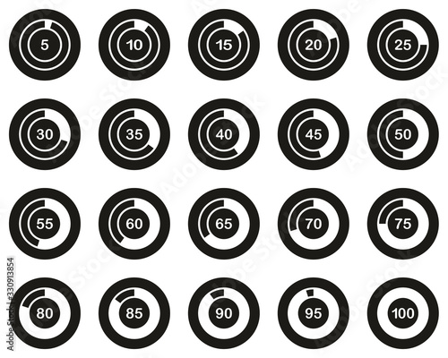Loading Or Percentage Icons White On Black Flat Design Circle Set 01 Big