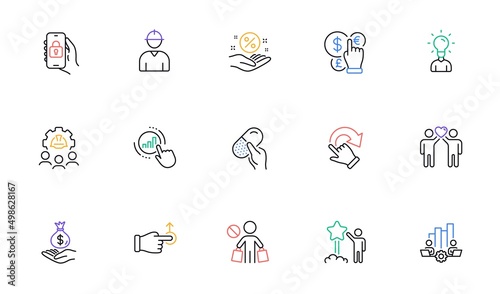 Loan percent, Capsule pill and Income money line icons for website, printing. Collection of Engineer, Education, Star icons. Graph chart, Stop shopping, Teamwork chart web elements. Vector