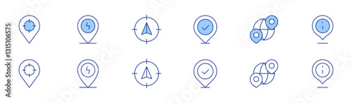 Location icon set in two styles, Duotone and Thin Line style. Editable stroke. location pin, compass, placeholder, world, target
