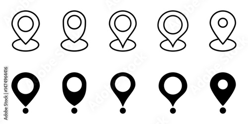 Location pin icons set. Map pin place marker collection. Location icons. Map marker pointer icon set. GPS location symbol collection. Flat style vector illustration