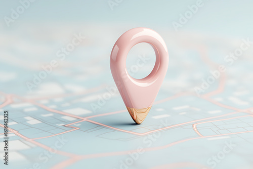 Location Pin on Map: A pink and gold location pin rests on a detailed map, signifying a destination, point of interest, or specific location.