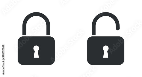 Lock and unlock icons: black, white, simple. Set of close and open locks