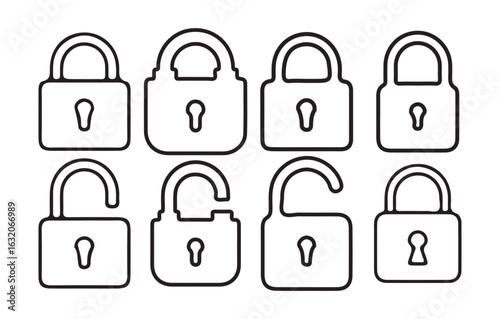 Lock icon set. Locked and unlocked vector icon, Lock Closed Icon, lock and security icon for app, ui, website and logo. Victor illustration eps10